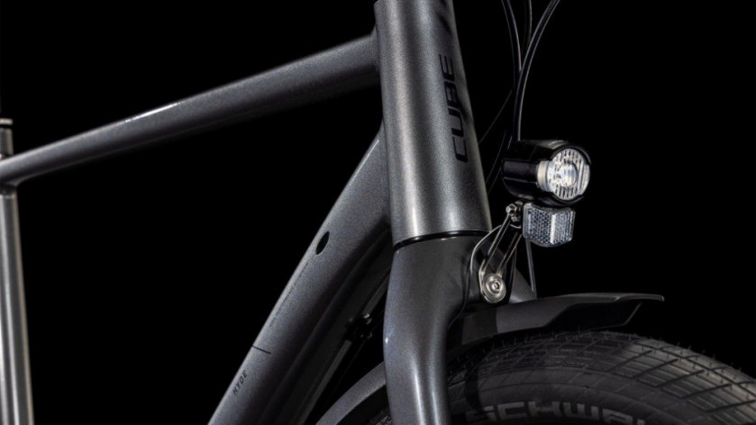 Hyde ONE FE na nowo definiuje wszechstronność na dwóch kółkach. To dlatego, że wyposażyliśmy go we wszystko, czego potrzebujesz - od półzintegrowanego bagażnika po pełnowymiarowe błotniki, nóżkę i zestaw oświetleniowy zasilany dynamem w przedniej piaście. Wygodna w użyciu 8-biegowa przekładnia Shimano Essa ułatwia pokonanie każdej trasy, a mocne hydrauliczne hamulce tarczowe Shimano oraz przyczepne, wygodne opony Schwalbe Big Apple zapewniają bezpieczne hamowanie w każdą pogodę. To znakomity rower, bo poruszanie się po mieście powinno być przyjemnością, a nie obowiązkiem.